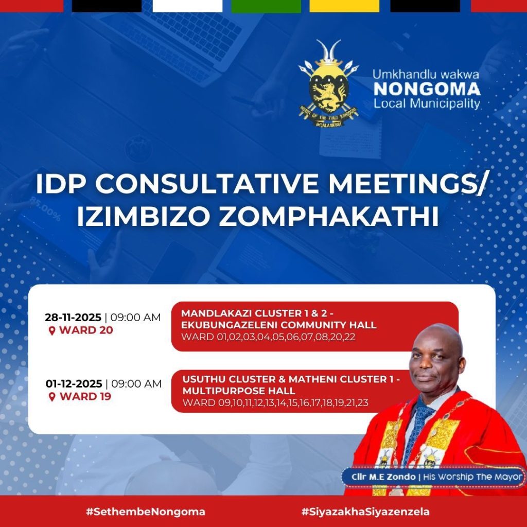 November 26, 2025 - In Public Notices By Communications Department Comment off IDP CONSULTATIVE MEETINGS / IZIMBIZO ZOMPHAKATHI Previous PUBLIC NOTICE-IDP&BUDGET ROADSHOWS